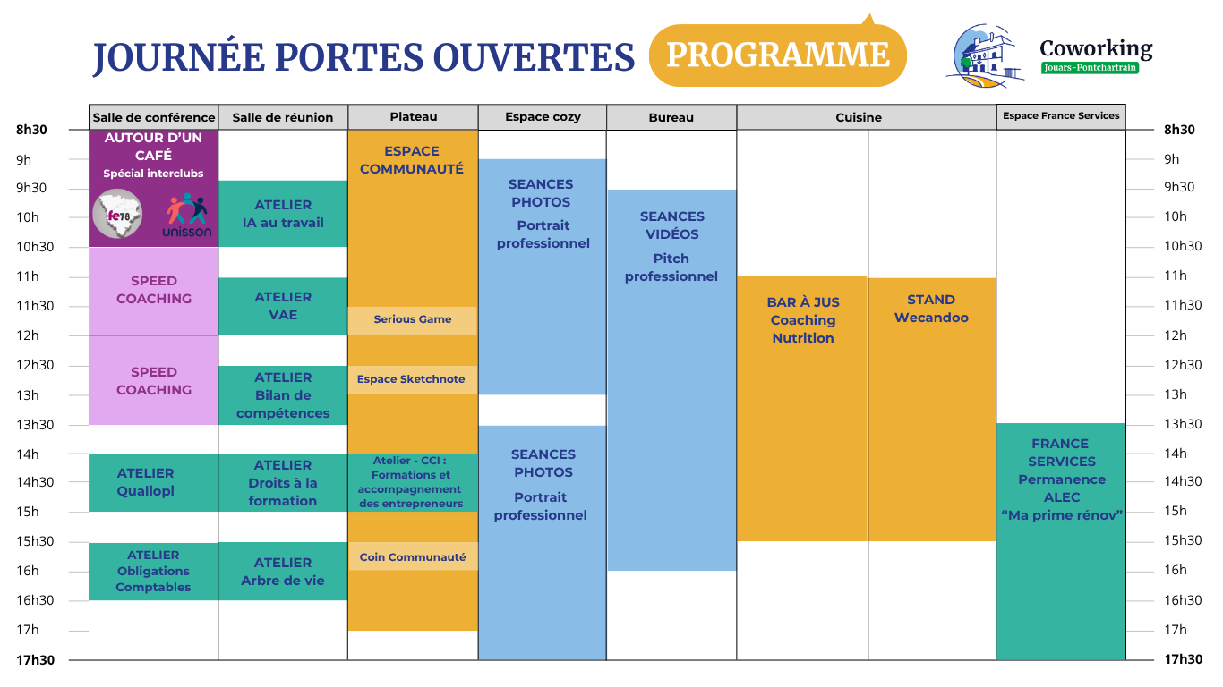 [Programme en cours de construction] Les infos en avant première dans votre boite e-mail en vous inscrivant à : https://coworkingjp.fr/newsletter/